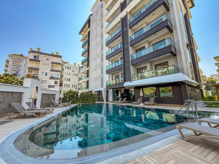 The flats for sale in Alanya, Turkey are 250 m from supermarkets, pharmacies, health clinics, schools, cafes, and restaurants; 780 m from Kleopatra Beach; 1.8 km from Alanya Castle; 3.7 km from Alanyum Mall; and 40 km from Gazipasa Airport.