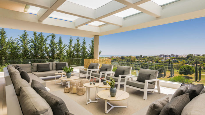 This villa for sale in Benahavís Málaga enjoys a well-connected location along the coast. Málaga Airport is approximately 70 km away, providing easy national and international access. Marbella town centre lies around 20 km from the villa, while the marina of Puerto Banús is about 12 km away. The nearest beaches are just 2 km from the property, offering quick and convenient access to the sea.