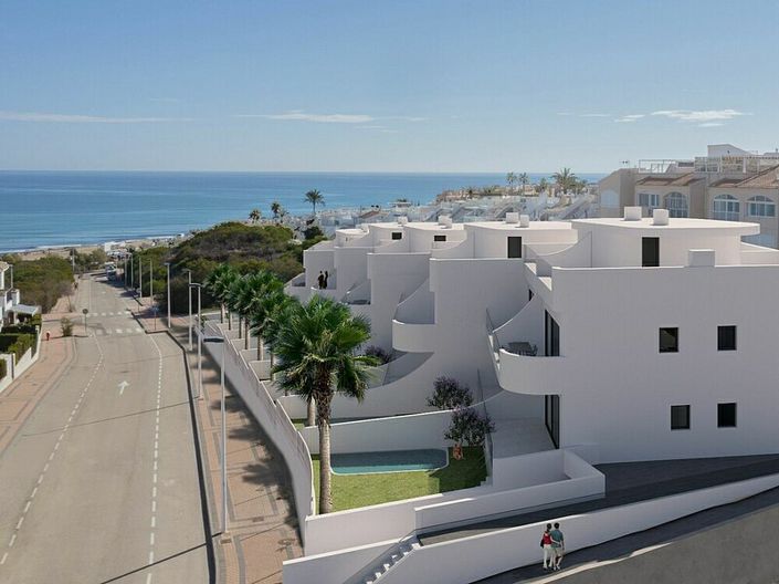 Exclusive complex of 20 homes in La Mata Beach, Torrevieja. 2-bedroom, 2-bathroom residences with sea views. Choose from ground-floor with terrace/garden or top-floor with terrace/solarium. Each home includes basement parking, storage, and access to a communal infinity pool and elevator. Designed for optimal sea breeze and spectacular views, ensuring a private and secure environment with reduced energy consumption.