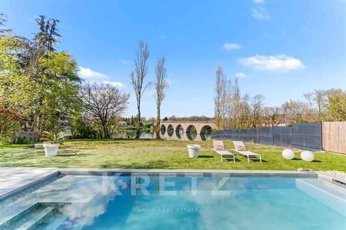 On the Tarn’s frontline with a private pontoon, 10 minutes from Albi and 45 minutes from Toulouse gates, a 2024 contemporary villa, 7 rooms, 225 m2, on a 2,600 m2 plot with exceptional views, a swimming pool, 5 bedrooms including 3 suites with shower/bathrooms (one suite has independent access + kitchen).