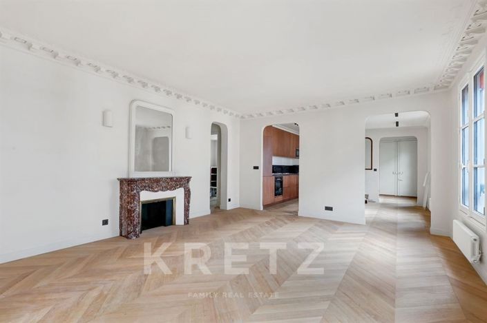 Paris 8th Faubourg Saint-Honoré Madeleine. Quiet and private. On the 4th floor of a prestigious building, a family apartment of approximately 114 m² fully renovated by an architect with high-end materials. Living room, dining area with open kitchen, well-balanced spaces. Three large bedrooms, three bathrooms. Sought-after location, a stone's throw from shops, restaurants and iconic monuments of the neighborhood.