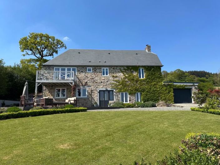 This 3 bedroom detached house has fabulous panoramic views over the valley. The living spaces are open-plan, modern, light and spacious. The garden is very pretty and there’s a lovely decked area as well as a first floor balcony, perfect for admiring the views. The bustling market towns of Vire and Villedieu are within easy reach and the ferry port at Caen is 1hr away.