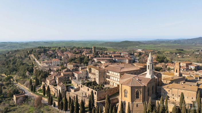 Supreme views over the Val d’Orcia, fascinating historic complex with authentic features, potential expansion by an additional 300 sq m, for sale in Pienza. On the edge of the enchanting town of Pienza, within walking distance of the historic centre, this captivating 19th-century stone property enjoys a picture-perfect setting with breathtaking views across the rolling Tuscan hills. The current layout includes a 164-square-meter residence with terracotta floors, exposed-beam ceilings, and a majestic brick fireplace that dominates the living room. The accommodation also comprises a farmhouse-style kitchen, two generous bedrooms, and two bathrooms. Three outbuildings offer exceptional potential for conversion: a former olive press, arranged over ground floor and basement levels, a former mill, with ceiling heights reaching up to 7 metres/23 ft, and a two-storey stone storage building, presenting a remarkable opportunity to create dramatic loft-style living spaces, guest accommodations, or elegant reception rooms. In total, the buildings offer 513 square meters (5,522 sq ft) set within a private garden on the edge of town and surrounded by an olive grove. The land surrounding the property includes a building lot for constructing an additional 300 square meters (3229 sq ft) of buildings and a 90-square-meter swimming pool. According to an initial feasibility study, it is possible to build up to 20 bedrooms with en-suite bathrooms and common areas (reception, restaurant, pool bar). Apolloni & Blom is at your complete disposal with a local network of professionals and constructors to support you from the design to full turnkey realization! Contact us for more details! PROPERTY Ref: PNZ3561Location: Pienza, Municipality: Montepulciano, Province: Siena, Region: TuscanyType: 513 sq m/5,522 sq ft rustic stone complex by the city walls with garden, and a building plot to construct further 300 sq m/3229 sq ft of accommodations and a swimming poolYear of construction: 1800Conditions: main residence in good condition; annexes to restore Land/Garden: 4,135 sq m/1 acre of land with olive grove and building plot for accommodation and poolTerrace/Balcony: 1 balcony and 1 terraceParking: carport and open-air parking Layout: Main Building - 164 sq m/1,765 sq ft: Ground Floor: entrance hall, utility/laundry room, staircaseFirst Floor: living room with balcony, farmhouse style kitchen, dining room, hallway, 2 bedrooms, 2 bathrooms Annexes: two-story former olive press building; two-story former mill and a two-story stone storage buildingsDistance from services: on footDistance from main airports: Perugia 90 km/56 miles, Florence 130 km/81 miles, Pisa 170 km/106 miles Utilities: Fixed telephone network: availableInternet: availableHeating: LPG, radiators, air conditioningWater: mains city supplyElectricity: availableWater waste: mains city connectionThe property is owned by a private individual. The location, for privacy, is approximate. Please note all measurements cited are approximateEnergy Efficiency Rating: GApolloni & Blom RE conducts technical due diligence with the owner's technician to have a full report on each property's urban and cadastral state of the art. The due diligence may be requested by clients showing a strong interest in the property