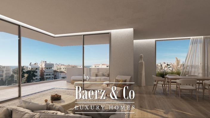 Perched on the third and fourth floors of a newly built residence in Voula, on the legendary Athens Riviera, this exceptional two hundred one square meter apartment offers a rare sanctuary of privacy and refinement in one of the most sought after and prestigious coastal areas in all of Europe. From this elevated position, great views stretch toward the sea while the property maintains a tranquil, almost secluded atmosphere, yet it remains only steps away from the shoreline and the vibrant shops, restaurants, and cafes that define the lively yet sophisticated character of the area.