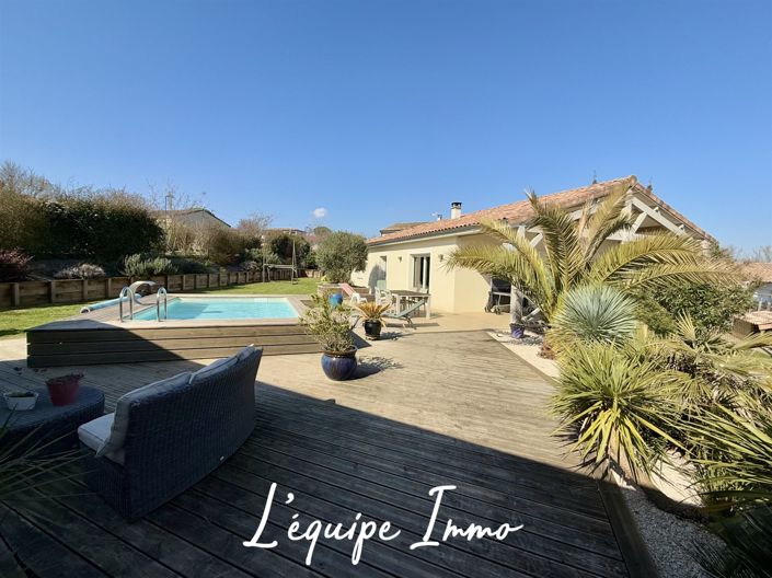 Exclusively at L'equipe Immo, let yourself be charmed by this recently built 3-bedroom house, offering a bright, modern living space with a strong focus on outdoor living, in a residential area just 1km from the town center. The main house, with 97m2 of living space, features a beautiful, light-filled living room with a welcoming and functional layout. The sleeping area comprises three bedrooms and a bathroom, ideal for comfortable family life. In addition, there is a pool house with a guest bedroom and a shower room totaling 13m2, perfect for hosting family and friends or for a side hustle. A summer kitchen further enhances this outdoor space dedicated to entertaining. The meticulously landscaped garden offers a truly relaxing atmosphere with its beautiful swimming pool, wooden decking, and landscaping, creating a pleasant and private environment. A double garage completes the property, providing everyday comfort and convenience. A rare find, where you truly feel like you're on vacation all year round.