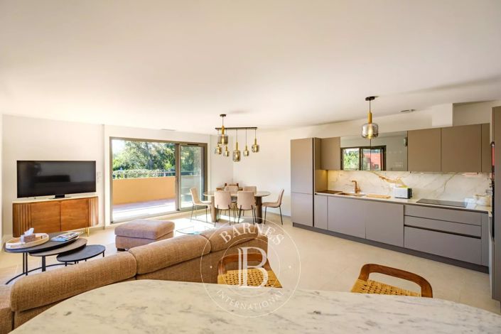 Sole Agent Barnes - Discover this exceptional flat, set in a peaceful, leafy setting just a stone's throw from the prestigious Beauvallon golf course and beaches. Nestled on the top floor of a new luxury residence comprising just 10 top-of-the-range homes, this corner flat boasts uninterrupted views.