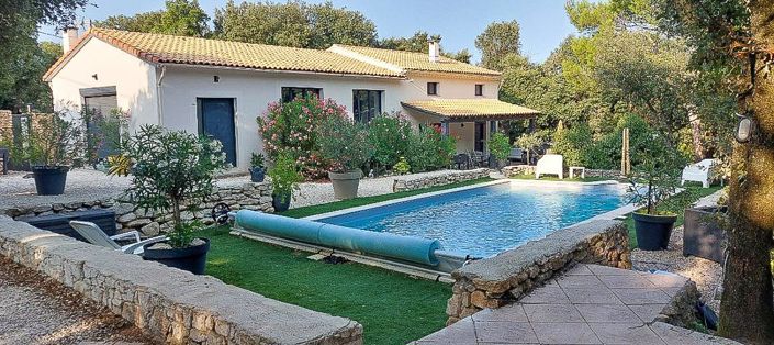 In a privileged, quiet setting and in immediate proximity to the village, the ensemble includes a former 1980s hangar, completely rehabilitated into a loft-style living space, set on a tree-lined plot of over 2,300 m² with an attached gîte. The living area of 65.90 m² offers generous space and great light thanks to a wide glass wall with a roller shutter. The open kitchen, fully equipped, integrates seamlessly with the living and dining area in a contemporary and warm atmosphere. A pantry completes this space. The sleeping area, accessible by a few steps, includes a separate WC and three bedrooms: two have private shower rooms, and a master suite features a dressing room, a bathroom, and a separate entrance. Attached to the main dwelling, a gîte of about 45 m² with terrace and jacuzzi. Fully furnished, equipped, and air-conditioned. Two bedrooms, one bathroom. It offers real rental potential or the possibility to host family and friends autonomously. The outdoor spaces have been thoughtfully landscaped with elegantly integrated stone walls. Saltwater pool in a shell, 9 x 4.5 m (depth 1.50 m), secured by a pool cover. Available August 2026. (5.21% gross fees payable by the purchaser.)