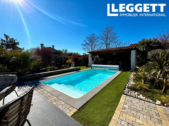 A recently built energy-efficient house with 4 bedrooms, 3 bathrooms, a garden and a heated swimming pool