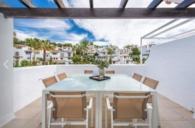 Discover this rare gem in the heart of vibrant Nueva Andalucía, within the exclusive Ivy Residence – a beautifully renovated boutique complex of just 26 modern apartments, ideally situated in Marbella's coveted 'Golf Valley' on the Costa del Sol. This spacious, light-filled two-bedroom home offers a thoughtful layout across two levels, perfect for couples, small families, or as a lucrative holiday retreat. Nestled in a prime spot just a 10-minute stroll from the glamorous Puerto Banús marina – with its designer boutiques, yacht harbour, fine dining, and buzzing nightlife – and moments from pristine beaches, world-class golf courses like Aloha and Los Naranjos, international schools, supermarkets, gyms, and trendy restaurants. Enjoy the best of Mediterranean living with effortless access to everything, yet in a peaceful, residential setting away from the hustle.