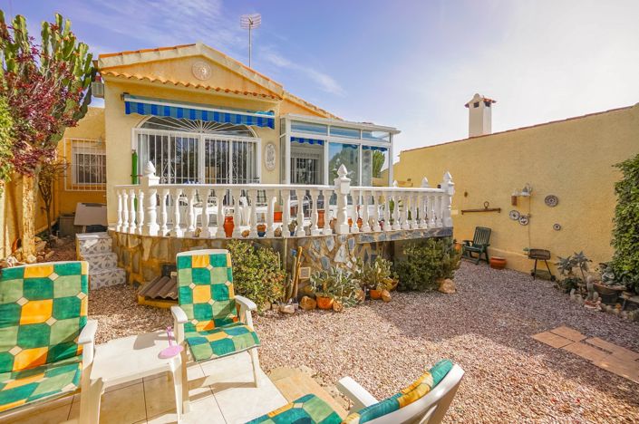 Now available, this extended south-facing Rosa-style detached villa offers 2 bedrooms and 1 bathroom, complete with a private garage. The villa is located in a quiet cul-de-sac within Urb. La Marina, which is surrounded by similar-style properties. Within walking distance, you will find a wide range of amenities, including bars, cafés, restaurants, a supermarket, and medical services, making this an ideal home for both permanent living and holidays.