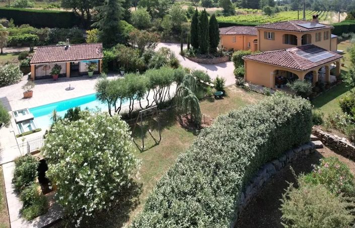 Discover this beautiful Provençal villa nestled in the picturesque village of Cotignac, renowned for its natural beauty and tranquil ambiance. The property boasts classic Mediterranean architecture with a terracotta-tiled roof, stone accents, and lush, vibrant landscaping that captures the essence of the French countryside.