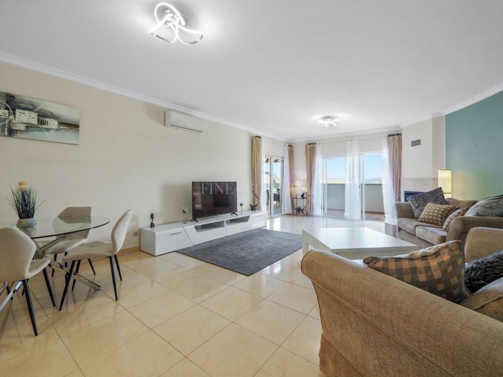 This beautifully designed two-bedroom, top-floor apartment boasts breathtaking panoramic views, with access to a spacious rooftop terrace offering sweeping vistas across Portimão and the Monchique mountains. The terrace is thoughtfully equipped with a built-in BBQ and dedicated entertaining area, perfect for enjoying the Algarve lifestyle. The apartment offers approximately 140m² of living space, featuring a generous and light-filled living room that opens directly onto a terrace. The accommodation includes a master bedroom suite, an additional twin bedroom, and a stylish family bathroom. The fully fitted kitchen also benefits from access to a secondary terrace, enhancing the indoor-outdoor flow. Designed for year-round comfort, the property includes underfloor heating throughout, air conditioning in the lounge and master bedroom, and ample storage space. Set within an exclusive resort, the apartment enjoys some of the Algarves most spectacular surroundings. Residents have access to two swimming pools and two tennis courts, with further premium facilities currently under development. Ideally positioned between Carvoeiro and Ferragudo, the property is conveniently close to supermarkets and a wide selection of restaurants, all just a short drive away. Caneiros beach with its famous restaurant is within walking distance.