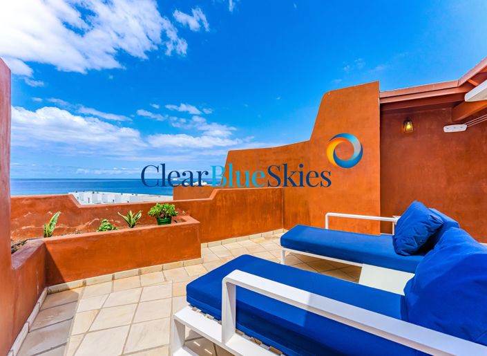 Clear Blue Skies are pleased to present this attractive two bedroom duplex penthouse apartment on the luxurious and perfectly positioned Playa de los Menceyes complex in Palm-Mar.