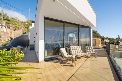 Discover this exclusive new 3 bedroom villa, of single storey construction, located in Arco da Calheta, in a quiet and highly prestigious residential area, where privacy and serenity merge with a stunning sea view. With a contemporary architectural design and elegant lines, this property was thought out to the smallest detail, privileging comfort, natural light and excellent finishes. The open-plan living and dining area integrates seamlessly with a modern fully equipped kitchen. All three bedrooms include built-in wardrobes with high-quality finishes, including an exquisite master suite. Bathrooms showcase modern design using quality materials. Exterior amenities include a private pool and garden areas with ocean views.