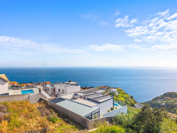 We present this new house T2+1 located in Arco da Calheta, Calheta, featuring contemporary architecture and high-quality finishes. The main house features three large suites, all with private bathrooms, built-in wardrobes and sea views, a living room and kitchen in open-space concept with generous areas, plenty of natural light and panoramic windows, a modern, fully equipped kitchen with central island and premium finishes, an indoor barbecue area, and a covered car park with capacity for more than 5 vehicles. The property also includes an independent apartment with a separate entrance featuring a living room, equipped kitchen, bedroom, bathroom and access to a pleasant balcony with sea view and garden area. Located minutes from Calheta beach, marina, restaurants, supermarkets and with quick access to the highway.