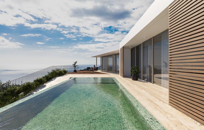 This villa is a true refuge where luxury is expressed in an authentic way. The façade was designed to maximise the entry of natural light, favour ventilation and ensure total privacy. The property has a large and fully sheltered patio, surrounded by a green environment that invites you to rest and well-being. In the living room, large panoramic windows reinforce the continuous connection with the outside. Neutral tones and organic textures create an elegant contrast with sophisticated finishes. The kitchen has been carefully planned with a smooth stone island combined with wooden details, a premium oven, stove, dishwasher, and a fully integrated refrigerator. The rooms stand out for their spaciousness and brightness, with direct access to the outdoor areas.
