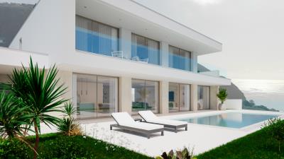 Ocean III Residences 3+1-Bedroom Villa. Located in one of Madeira's most privileged locations, this stunning 3+1-bedroom semi-detached villa offers perfect sophistication, comfort, and nature integration. With 302.86 m² of gross living area across two functional floors, the property is positioned 3 minutes from the marina, beaches, and Calheta center. The ground floor features a spacious 49.96 m² open living and dining space with direct access to the outdoor area and pool, an independent fully-equipped kitchen with Bosch appliances and Dekton finishes, an office or extra bedroom (26.32 m²), a powder room, laundry room, and a two-car garage. The upper floor is dedicated to well-being with three suites featuring private bathrooms and premium finishes including Supreme Memories tiles. The master suite includes a walk-in closet. Exterior spaces include a wraparound garden, a 42.24 m² pool, a 69.55 m² solarium, and a 10.07 m² barbecue area and patio. Technical specifications include Gerflor vinyl flooring, Techlam/Flaviker ceramic tiles, LED recessed lighting, climate control, pre-installation for an elevator and electric vehicle charging, a photovoltaic system for energy efficiency, and Cortizo aluminium windows and doors with double glazing.