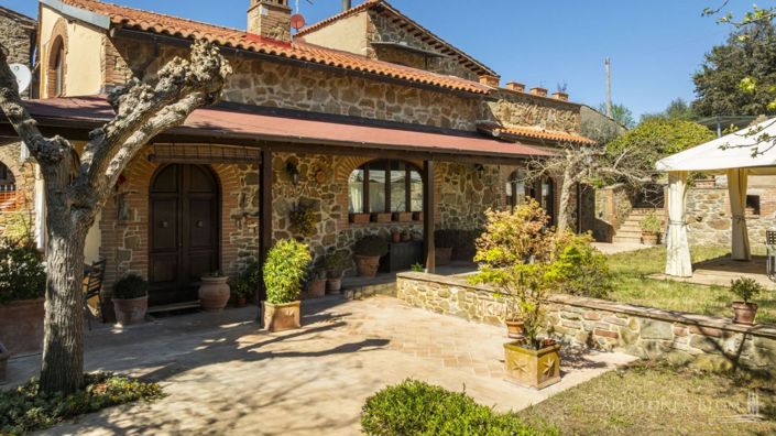 Located within an ancient hamlet, unique two-level country house with fine interiors, for sale in the surrounding of Trequanda, Siena. Within a small and time-softened hamlet in the Tuscan countryside, between Trequanda and Sinalunga, this distinguished stone casale dates back to the early nineteenth century and sensitively restored in 1996. The house retains its origins features while accommodating a more contemporary rhythm of living, its interiors composed with a deliberate balance of texture, proportion and light. It is arranged over two floors, offering a total of 315 square metres (3,390 sq ft), set within a fully enclosed private plot of 1,330 square metres (0,32 acres). Approached along a short gravel lane, the property forms part of an intimate cluster of dwellings, where the scenic Siennese landscape remains the principal presence. The façade, in warm local stone, carries a subtle dynamism, its traditional lines gently animated by later interventions. A porch extends along two sides of the house, offering shade and continuity between inside and out, while two balconies, one with a notably open aspect, draw the eye outward across the surrounding countryside and its shifting light. Internally, the ground floor is arranged for conviviality, with a antrance into a living room with fireplace leading into an open-plan kitchen designed for informal gathering. A double reception room, articulated around a central fireplace, provides a more atmospheric counterpoint. Upstairs, parquet floors introduce a mezzanine, two bedrooms, two bathrooms, and a study opening onto a panoramic terrace. The garden, enclosed and extending to just over a third of an acre, is quietly composed, entered through a simple wooden gate and offering a series of intimate and open spaces. There is the possibility of introducing a swimming pool, should one wish to extend the property’s leisure dimension, while a small annex of approximately 25 square metres, currently awaiting restoration, suggests further potential—whether as guest quarters or a more secluded working space or hobby room. PROPERTY Ref: TRQ3530 Location: Trequanda, Province: Siena, Region: Tuscany Type: 315 sq m/3,390 sq ft two-story country house with porch, garden and annexYear of construction: 1800Year of restoration: 1996Conditions: excellentGarden: 1,330 sq m/0,32 acres fully fenced garden Terrace/Balcony: porch and 2 balconies Swimming pool: option to build an in-ground pool available Layout:
