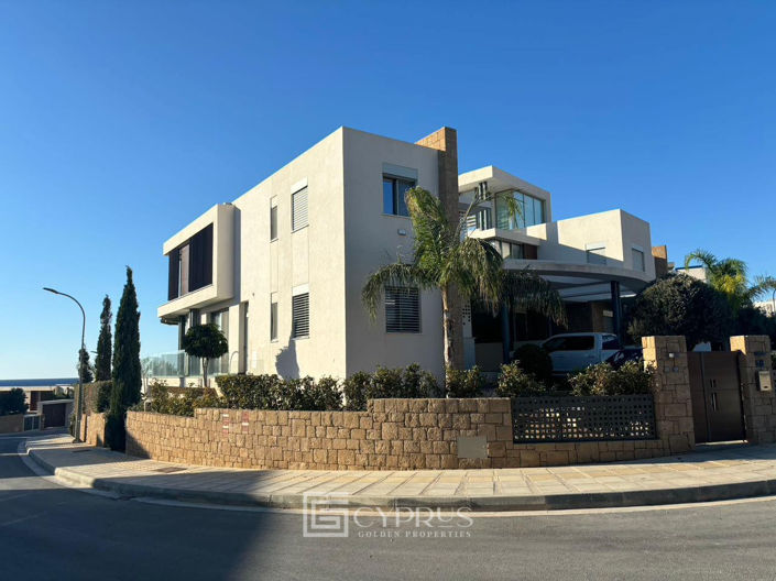 This luxury furnished villa offers an exceptional coastal lifestyle, just 50 meters from the sea in the sought-after Lower Chloraka area. Enjoy breathtaking panoramic views of the Mediterranean and the sound of waves from your doorstep. The villa combines modern elegance with premium comfort, featuring spacious interiors, en-suite bedrooms, and an inviting living area with a fireplace. Designed for year-round luxury, it includes underfloor heating, a VRV cooling system, and an advanced alarm system. The outdoor space is equally impressive, showcasing an infinity pool with a shower and an expansive roof veranda—perfect for entertaining or relaxing while taking in the sunset. An elevator provides easy access to all levels, including a large basement that is ideal for an office, home cinema, or guest suite. Additional highlights include a laundry room and gated semi-covered parking. Conveniently located near Aspire English School, St. George Beach, supermarkets, and amenities, this villa embodies elegance, comfort, and seaside serenity in one of Paphos’s most desirable neighborhoods.