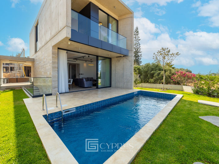Nestled in the serene coastal village of Kissonerga, this elegant three-bedroom detached house presents a remarkable opportunity to own a contemporary home that blends modern design with Mediterranean tranquility. Currently under construction and set for delivery in December 2026, this residence offers a refined lifestyle marked by comfort, privacy, and captivating sea views. Boasting a covered internal area of 182 m², complemented by 32 m² of covered verandas on a 268 m² plot, the property is thoughtfully crafted for both relaxation and effortless entertaining. The open-plan layout features bright, airy living spaces that flow seamlessly toward the outdoor area, where a private swimming pool and landscaped surroundings invite moments of leisure beneath the Cyprus sun. Each of the three spacious bedrooms is designed for comfort and style, alongside three sleek, modern bathrooms that reflect a commitment to high-quality finishes and functionality. Situated within a secure gated complex, this home offers peace of mind and an exclusive living environment just moments from the beach. With its Energy Efficiency Class A rating, it ensures sustainable living, excellent insulation, and reduced running costs. Perfect as a permanent residence or a luxurious holiday retreat, this Kissonerga home embodies contemporary coastal living at its finest.t.