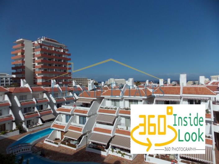 Located in the Central Location of Playa de Las Americas in Tenerife South, this 2 bedroom top floor apartment has a lounge with open plan kitchen, 2 double bedrooms with double glazed windows, a modern shower room and a South facing terrace from the lounge with distant sea views.