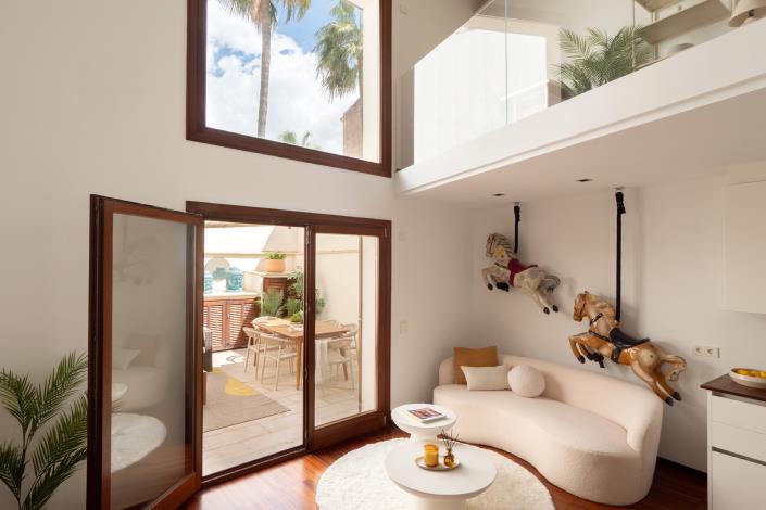 Set in the historic centre of Palma on a very quiet street, this thoughtfully designed duplex combines the character of the old town with a clean, contemporary interior. The apartment offers plenty of sunlight and an ample outdoor space on the same level.