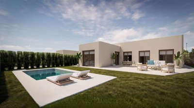 Your window to the Mediterranean: where golf meets calm and endless horizons!Exclusive new build villas with private pool and solarium in Corvera Golf, MurciaSituated opposite hole 8, with wide open views across the golf course and the surrounding natural landscape, the Olea Villas are designed to bring a sense of calm and connection to nature into every detail. The contemporary Mediterranean style is reflected in the single-storey architecture, spacious gardens, and private swimming pools. These luxury villas invite you to truly enjoy the best that life has to offer.This exclusive residential community consists of nine three-bedroom villas and one four-bedroom villa. Each home has been thoughtfully designed to create a feeling of harmony and serenity. Large windows allow natural light to flood the interiors while seamlessly connecting indoor and outdoor living spaces.Here, silence becomes a luxury, the pace of life slows down, and you can fully enjoy being at one with your surroundings. Located in the heart of the Region of Murcia, Corvera Golf & Country Club is a peaceful golf resort set at the foot of the Sierra de Carrascoy natural park. Just a short drive from the city of Murcia and the beaches of the Mar Menor, it provides the perfect balance between tranquility, sport, and easy access to local amenities.Prices from 482 000€ - Ready in June 2027