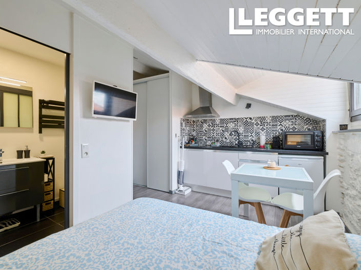 It is in perfect condition, beautifully decorated and fitted out. It has a floor area of approximately 16.5 m² with sloping ceilings, but the space is fully usable as you can see from the photos. Situated on the top floor with a lift, you could rent it out to spa guests or on a year-round basis to a student for €550 per month (including charges) or per spa treatment (potential for 14–15 treatments per year with good management). Service charges include water and the electricity supply.