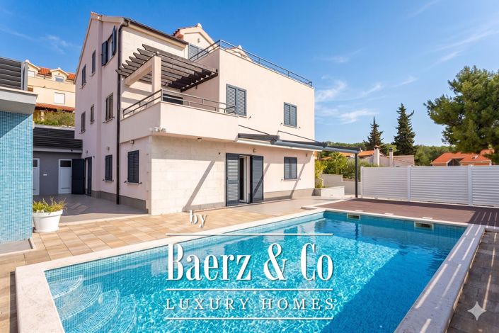Five bedrooms and five bathrooms across the residence support both personal retreat and hosting. Parking for six vehicles adds to its effortless convenience. With its excellent condition and readiness for immediate occupancy or tourist rental, this house with pool in Milna embodies comfort, quality, and a secure sense of place.