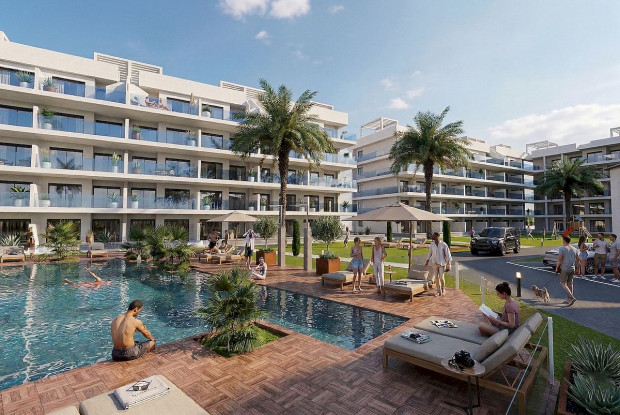Exclusive new development of 2 and 3-bedroom Apartments, centered around a large green area with a community pool in a privileged setting in El Raso, Guardamar.
