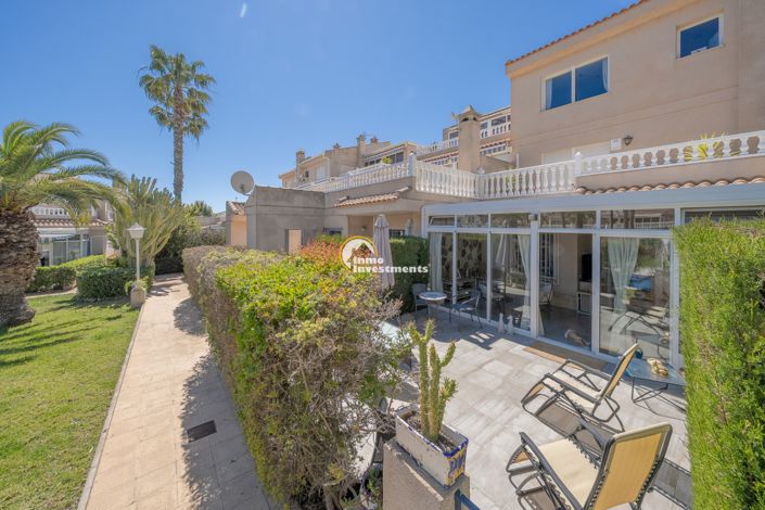 Charming ground-floor apartment in the sought-after Miraflores II community in Playa Flamenca, with views over the communal pool and direct pool access. The property offers approx. 65 m² of living space, including a spacious living and dining area with fireplace, an open kitchen, two double bedrooms and a family bathroom. The outdoor area provides space to relax while overlooking the pool, making it ideal for families. The property is sold fully furnished and is located in a well-maintained community with tropical gardens and two swimming pools, close to shops, restaurants, La Zenia Boulevard and the beach. Contact us to arrange a viewing.