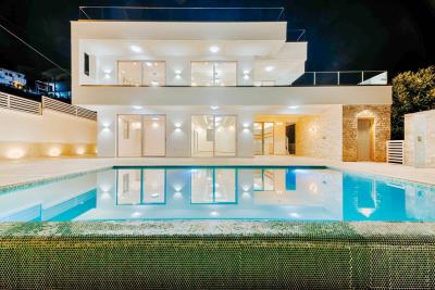 A contemporary villa on the first line to the sea with a boat mooring, private b...