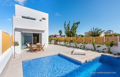 This sophisticated three-bedroom villa in the heart of Los Alcazares offers an u...